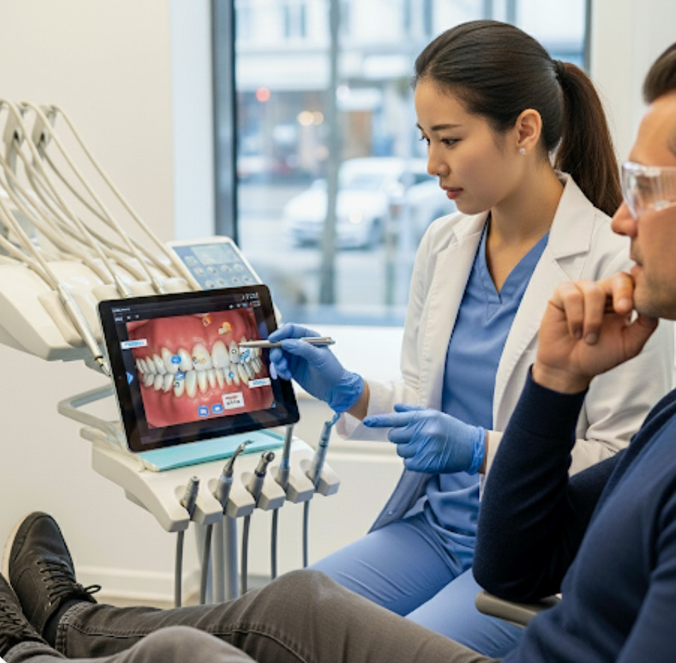 それを使用する事により歯科衛生士が図で分かりやすくお口の中の状況を説明し日常のケアをサポートすることで、虫歯や歯周病のリスクを減らし、健康な歯を長く保てるようになります。