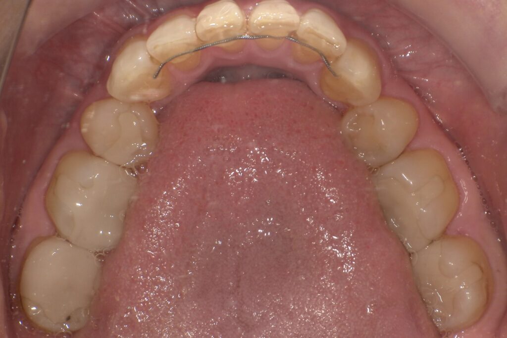 前歯の裏側にワイヤーを接着剤で固定するタイプです。